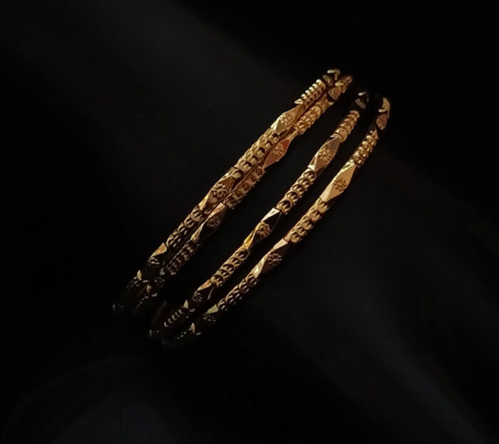 4 Pcs Carving Design Bangle With Flower Design And Diamond Cut In Center